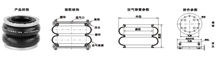 橡膠空氣彈簧總成由橡膠空氣彈簧、上底座、下底座(活🙇♀️塞)、緩沖墊經裝配後形一個具有密閉氣室的整體。